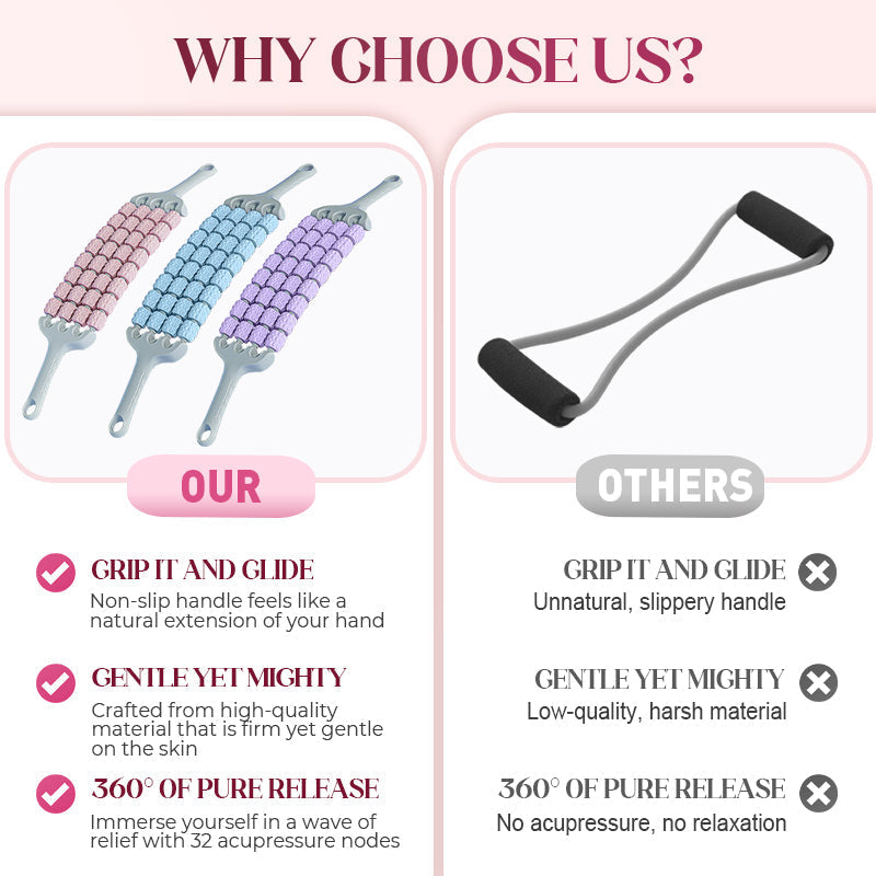 360° OF PURE RELEASE - Immerse yourself in a wave of relief with 32 acupressure nodes. They roll through tightness like a soothing wave. From post-workout tightness to everyday stress, this is your go-to for total muscle renewal.