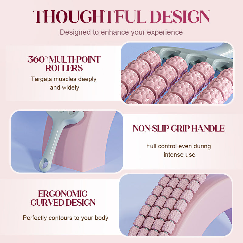 CURVES THAT KNOW YOUR BODY - This thoughtful curvature ensures perfect contact with hard-to-reach areas like your back, neck, shoulders, and legs, providing a deep and effective massage that straight tools simply cannot achieve.