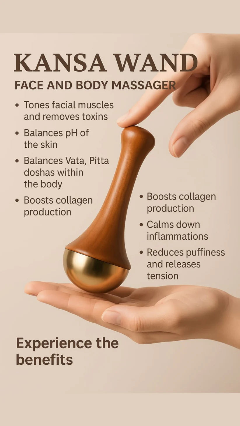 Kansa metal a blend of copper and tin, possesses unique properties that are believed to have detoxifying effects on the skin.